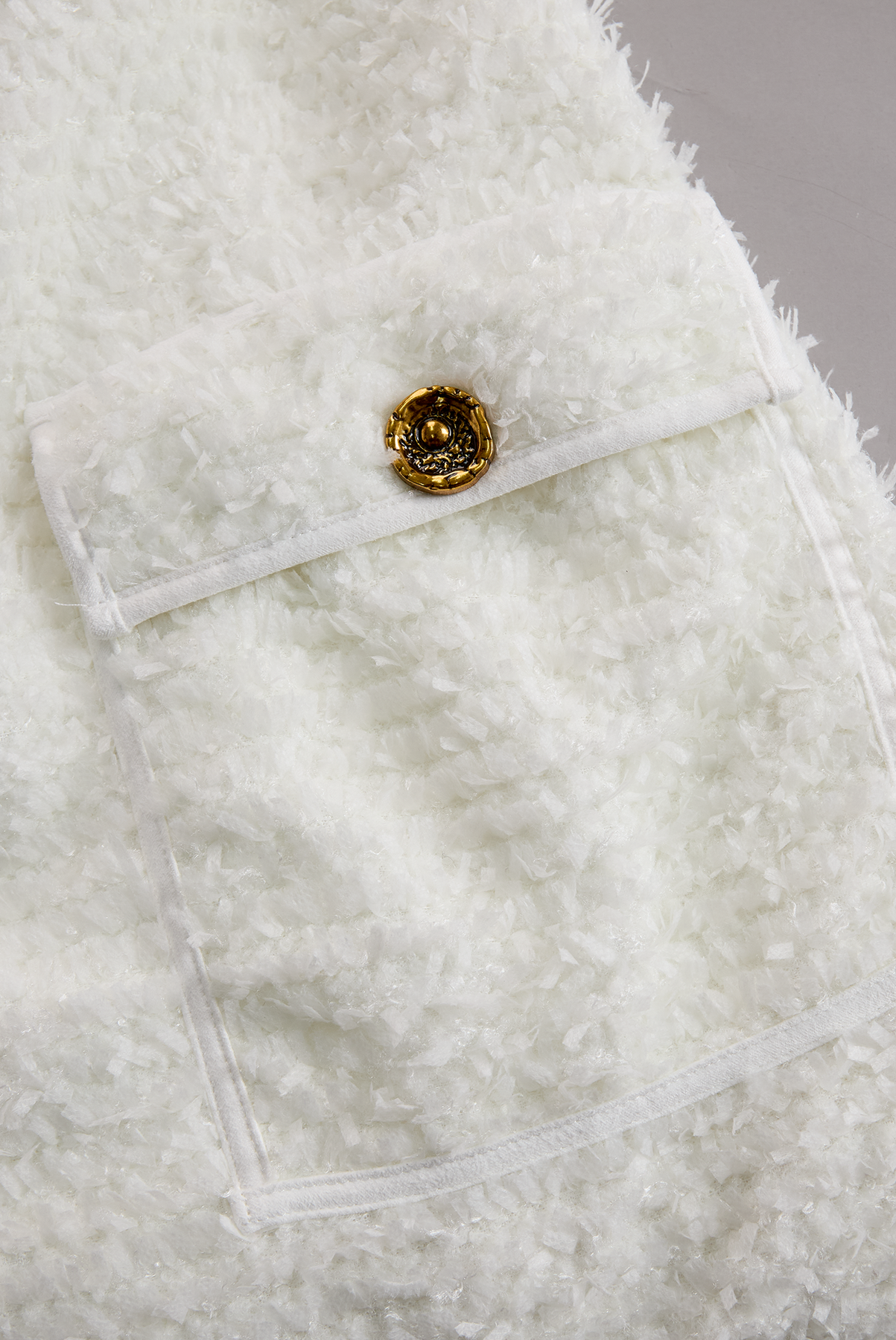 Ivory Tweed Button-Down Midi Dress With Patch Pockets